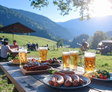 Neben kühlen Bieren servieren wir deftige Suppe, würzige Schmorwürste und dazu süße Kuchen sowie Kaffee. Ein rundum gelungenes Erlebnis in ländlicher Gemütlichkeit unseres Hofs.